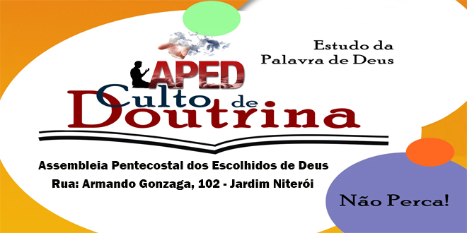 Culto de Doutrina – Sexta-Feira 02/05/2014 17 de junho de 201430 de abril de 2014 Por Igreja APED Culto de Doutrina – Sexta-Feira 02/05/2014 às 19:30